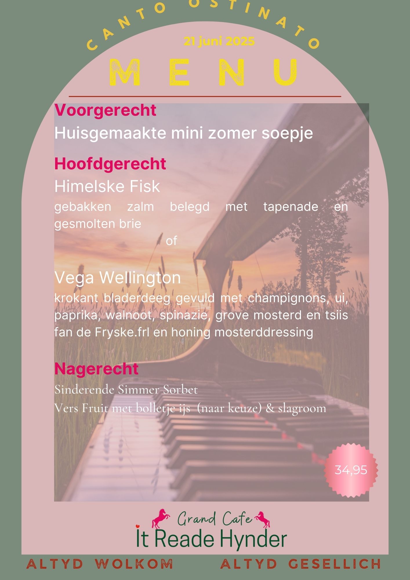 Midzomer Canto Ostinato diner op 21 juni 2025. 18.00 -20.00